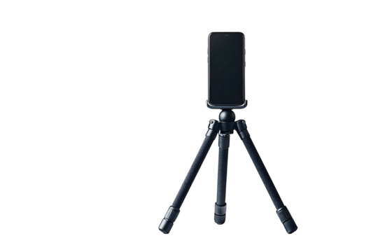 Modern smartphone on tripod in dark studio setting for technology focused visuals