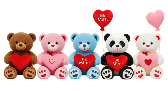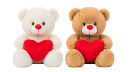 Valentine teddy bears holding hearts, soft toys, love symbols, cute gifts, couple, plush, transparent background