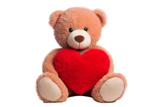 Cute teddy bear holding a heart isolated on transparent background
