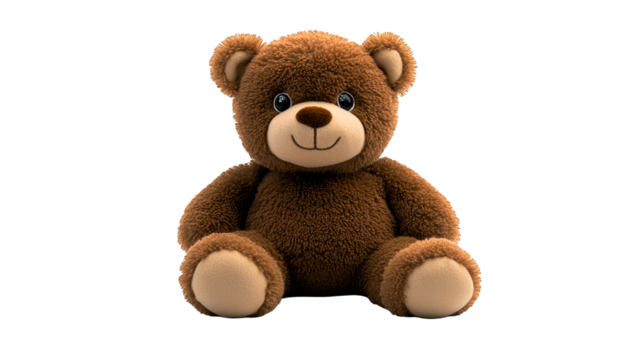 A soft and cuddly teddy bear toy isolated on a white background. This plush toy is perfect for representing childhood, comfort, and playtime in educational or commercial designs