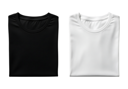Folded T-shirt: A pristine, neatly folded T-shirt in a serene blue hue sits invitingly, suggesting comfort and minimalist simplicity. This high-angle shot focuses on the garment's perfect form.