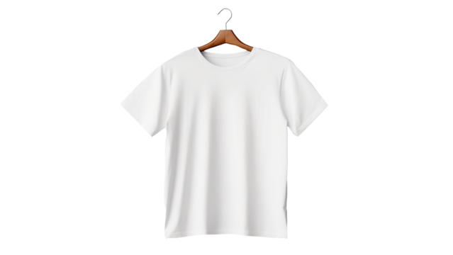 Isolated white t-shirt hanging on hanger. White t shirt on transparent background