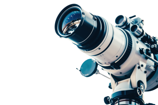 Modern telescope isolated on a transparent background,  PNG format