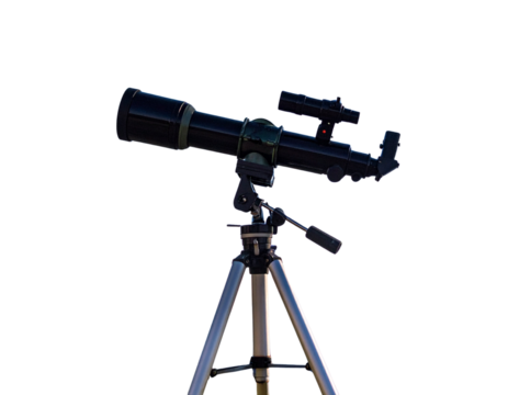 Blue telescope on tripod astronomy equipment space exploration science technology transparent background