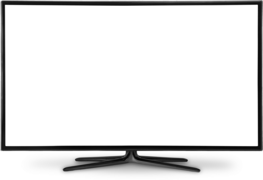 White screen LED TV television isolated image. Modern Computer Monitor mockup PNG. Realistic tv screen mock up. Television display on transparent background