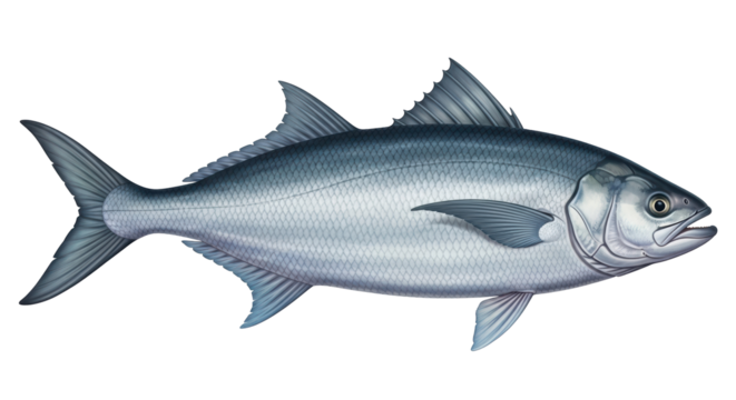 Isolated bluefish Pomatomus saltatrix, a marine fish found worldwide in temperate waters