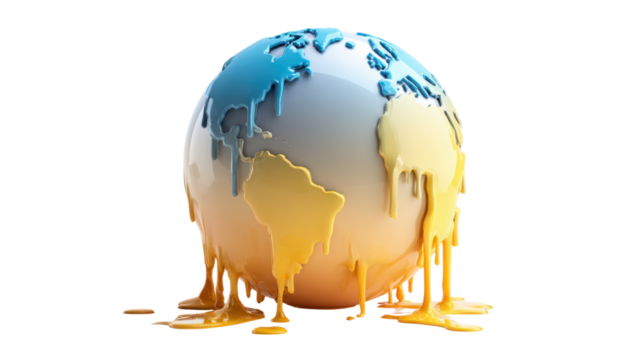 Earth globe melting, symbolizing global warming, climate change, and environmental crisis with rising temperatures
