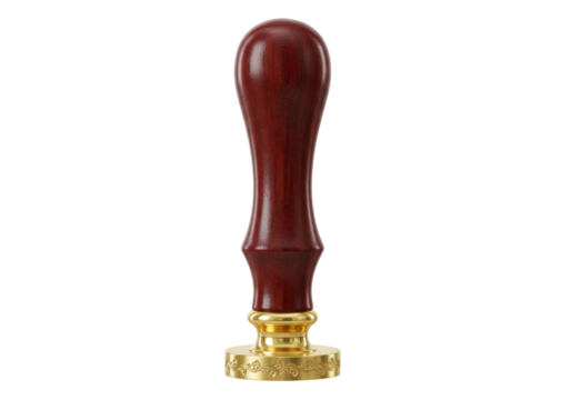 Isolated red wood handle wax stamp, ornamental vintage decoration for sealing letter