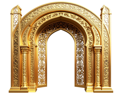 3D Rendered Luxurious Gold Archway with Light Reflections, Angled View