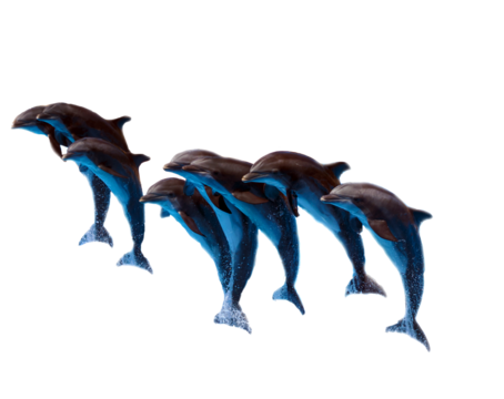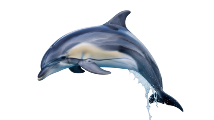 Isolated striped dolphin gracefully leaping out of the water in a powerful motion scene