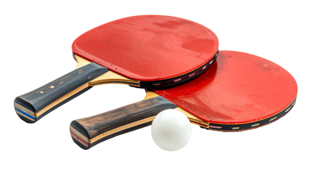 Table tennis racket with ball on transparent background