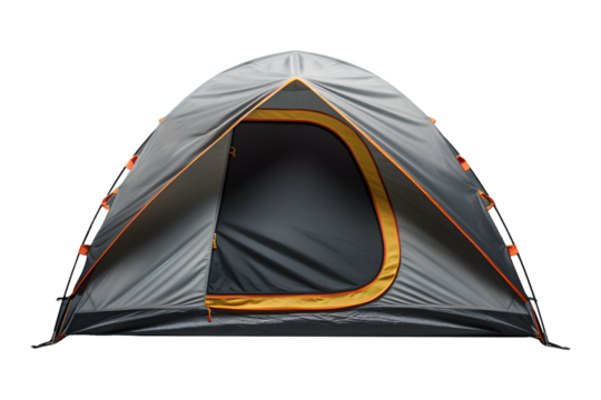 Camping adventure tent setup recreation camping gear nature ground level isolated on transparent background