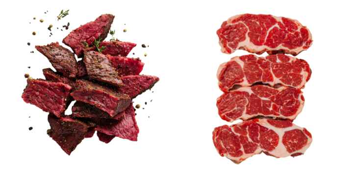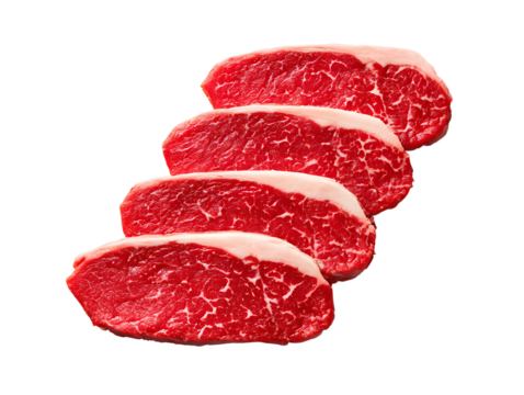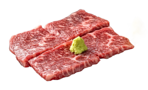 On a transparent background raw marbled beef slices are shown isolated and made with Generative Ai