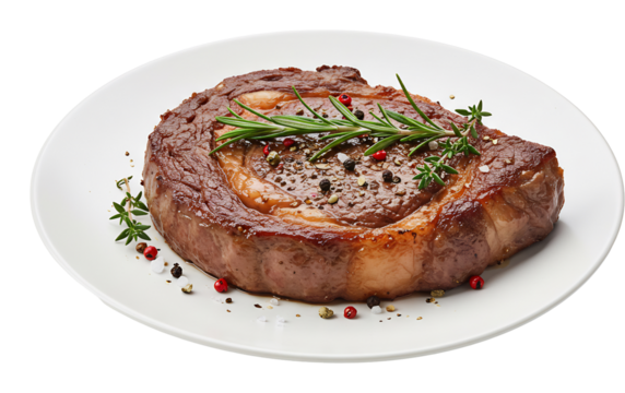 ジューシーな焼き加減のステーキ、食欲をそそる彩り豊かなハーブとスパイス