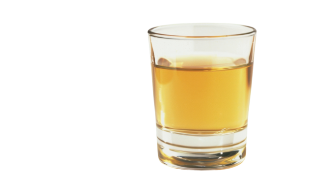 A shot of tequila on white transparent background