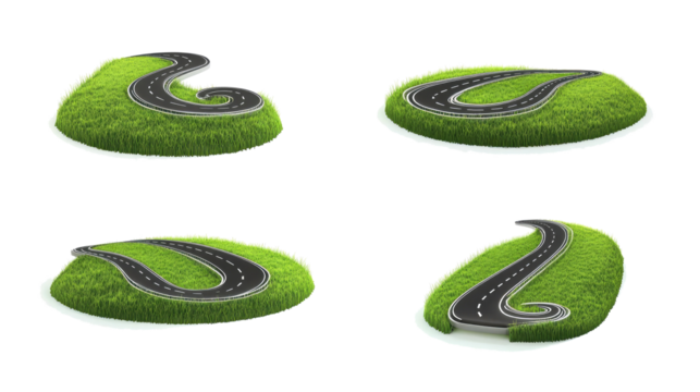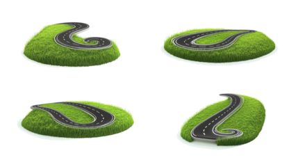 Winding Roads on Lush Green Hills Captured Against a White Backdrop Generative AI