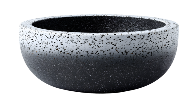 Modern geometric concrete planter with a terrazzo finish isolated on transparent background