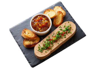 Smooth Duck Liver Terrine with Fig Jam and Toasted Brioche Points Served on Slate