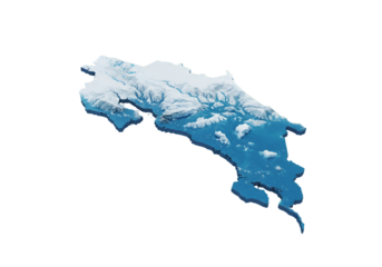 3D Isometric Illustration of Costa Rica Map in Blue with Transparent Background