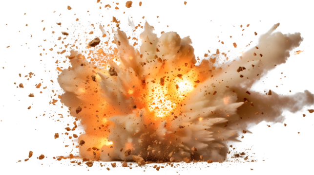 Digital illustration of exploding bomb on transparent background for concept use