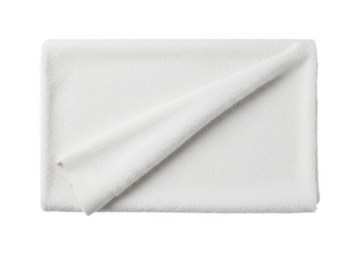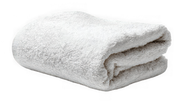 Soft white terry cloth towel neatly folded with a diagonal crease isolated on a transparent background
