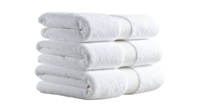 Folded white terry towel isolated on transparent background, soft and clean