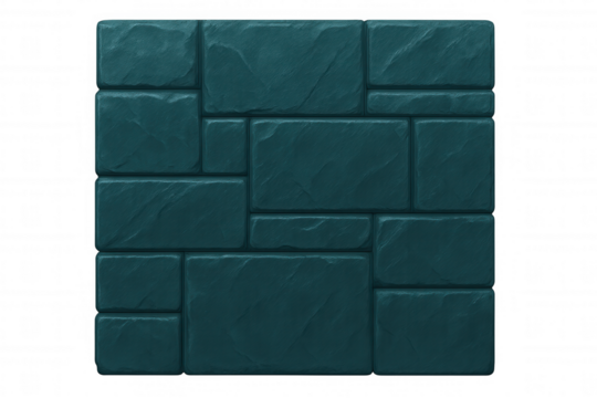 Seamless dark teal stone wall texture, transparent background, showcasing realistic stone surface pattern for architectural rendering, graphic design, digital media projects