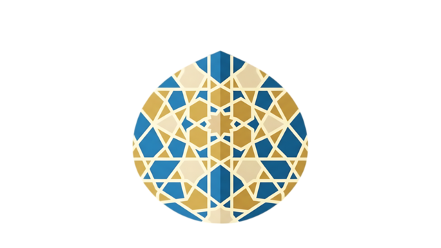 Blue and gold geometric pattern on a circular shape isolated on a transparent background beige