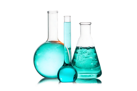 Digital illustration of test flasks on transparent background