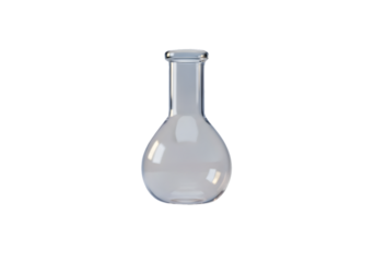 Round bottom flask with clear liquid isolated PNG, laboratory glassware for chemistry experiments on transparent background