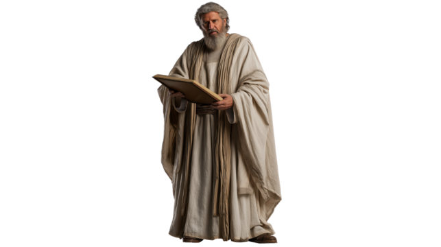 Zechariah full body on transparent background, Old Testament prophet in priestly robe, biblical figure PNG isolated for Christian faith and scripture themes.