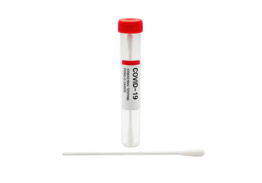 Sterile covid 19 testing swab and collection tube isolated on transparent background