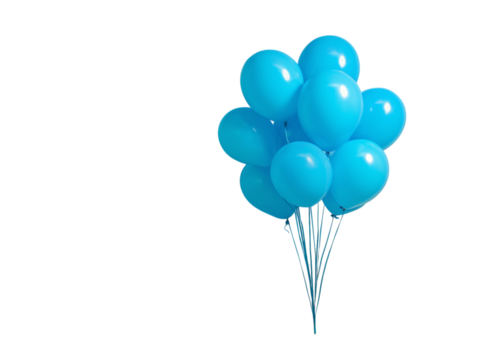 An eye-level shot presents a cluster of serene blue balloons, tethered together by delicate strings.