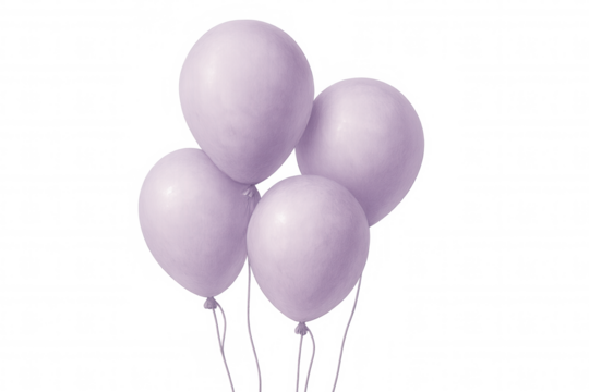 Purple balloons floating, tethered by strings against transparent backdrop, ideal for festive party embellishments