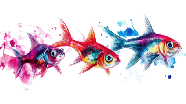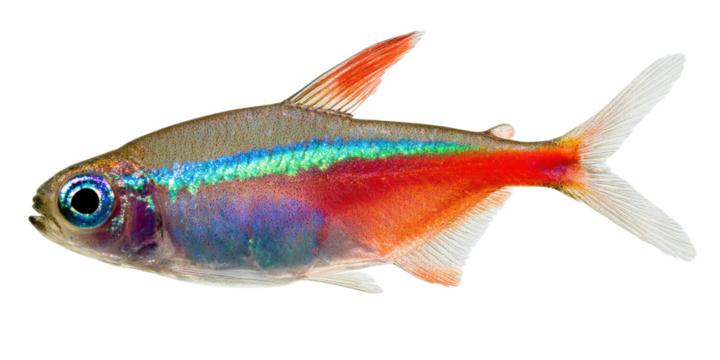 Neon tetra fish close up colorful aquarium fish freshwater fish pet fish exotic fish tropical fish on transparent background