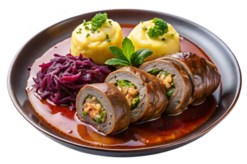 German Rouladen with Mashed Potatoes and Red Cabbage