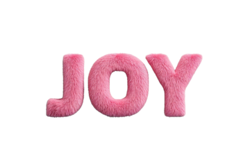 Pink Furry Letters Joy Word on Transparent Background for Celebration and Happiness