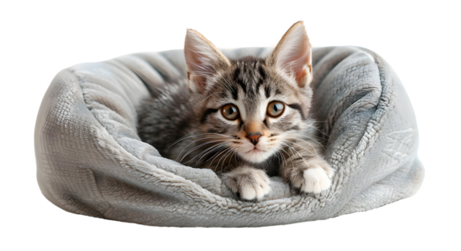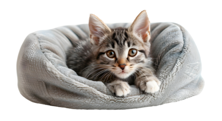 Cute Cat lying in bed, isolated on transparent background, pet concept, realistic illustration, generative ai