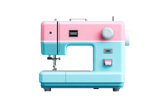 Colorful Vintage Sewing Machine Pink Blue Retro Style on Transparent Background
