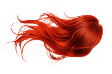 Vibrant flowing red hair cascading elegantly against a clean white background. the texture and movement of the strands. ideal for beauty or fashion-related content