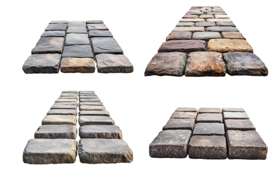 Stone paving slabs isolated on transparent background. Grey tile floor isolated on white background.