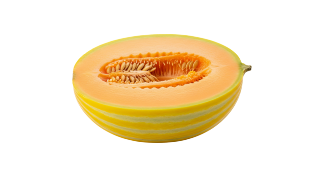 Sliced cantaloupe shows its orange flesh and seeds in the center of the fruit. - high quality Sliced cantaloupe shows its orange flesh and seeds in th