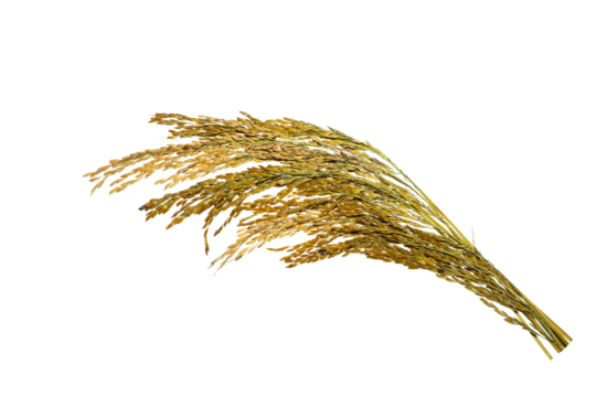 Organic paddy rice, ear of paddy, ears of Vietnam jasmine rice. PNG transparency.