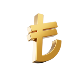 Gold Turkish Lira sign isolated on white background 3D illustration