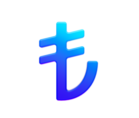 Vibrant 3D glossy Turkish Lira currency symbol in gradient blue and purple. 3d illustration