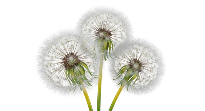 Three Dandelion Seed Heads on White Background