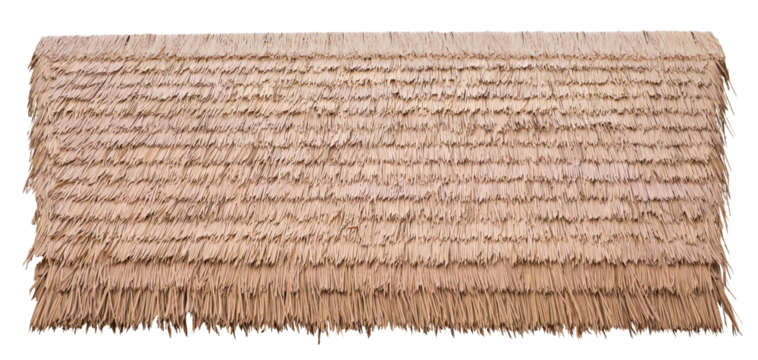 Thatched roof material in warm beige color. Thatching straw roof isolated. Straw pattern thatched grass roof