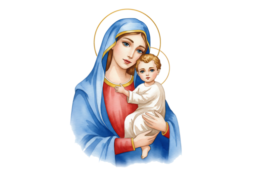 Artistic illustration of Virgin Mary, showcasing her serene presence and grace