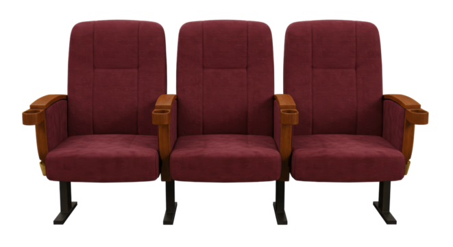 Red theater seats on transparent background for entertainment graphics