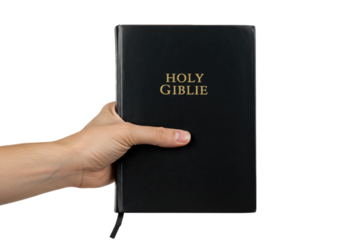 Isolated Holy Giblie in hand held by Christian reading theology scripture faith concept